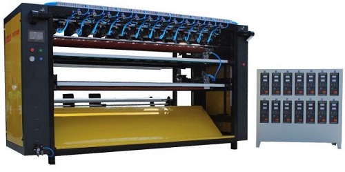Pengaturan dua bilah mencakup kabinet listrik, celah utama dan unit silang, dan jejak kaki yang ringkas. Kain diberi makan dari atas, bergerak langsung dari rol atas ke bilah vertikal di atas bagian lintas-potong. Jalur proses yang lebih pendek ini sangat ideal untuk bahan elastis, karena meminimalkan peregangan dan distorsi.